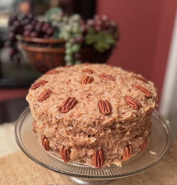 Silky moist chocolate 3 layers meet a lush rich buttery coconut‑roasted pecan filling in a dessert shaped by legacy. Crafted with intention and slow Southern care, it’s a sweet reminder that tradition can be tasted — and shared — one slice at a time.